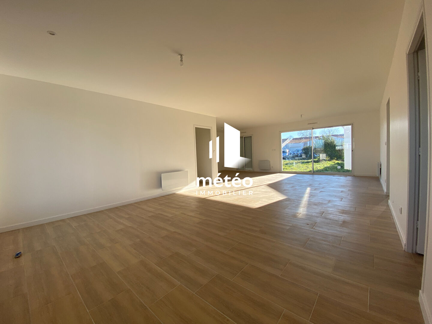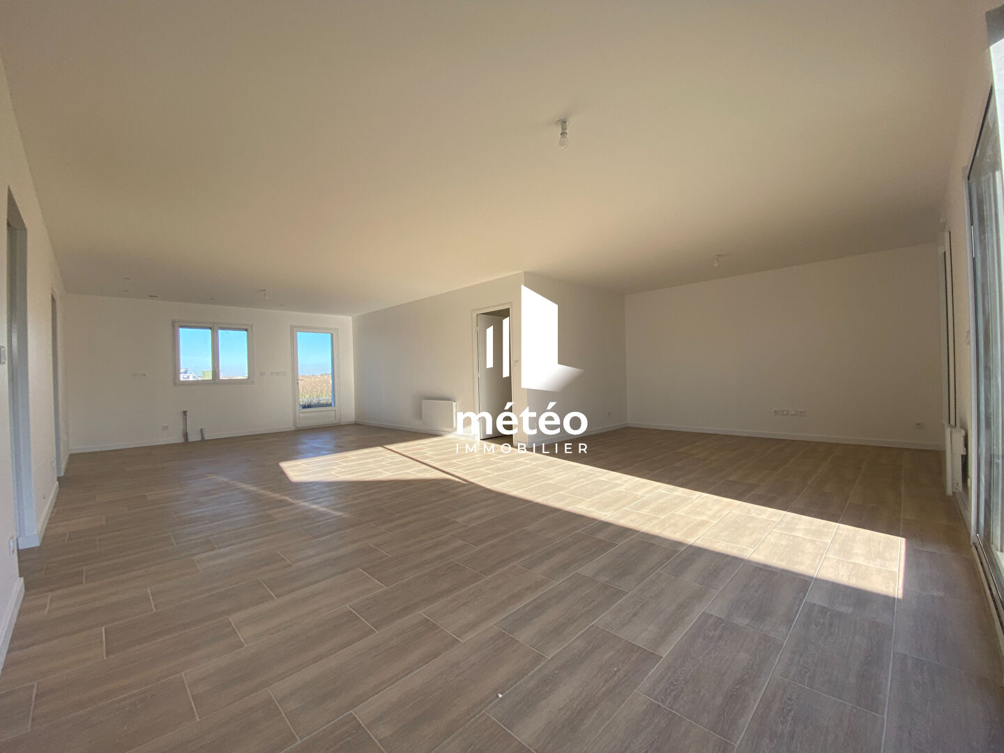 L'agence METEO IMMOBILIER vous propose cette maison neuve, de plain-pied, comprenant : une entrée spacieuse, un salon séjour lumineux de 53 m2, une cuisine ouverte restant à aménager, mais aussi un cellier et w.c séparés (aux normes PMR).