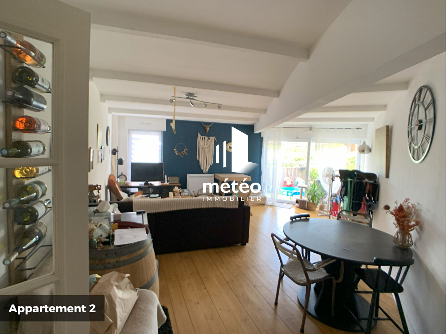 -1 Appartement T4 d'une surface de 100m2 disposant de 3 chambres, 1 salle de bain, 1 belle pièce de vie avec Poêle à bois, 1 Balcon orienté Ouest + 1 garage fermé attenant de 25m2. (Valeur locative 10 800 euros/an)