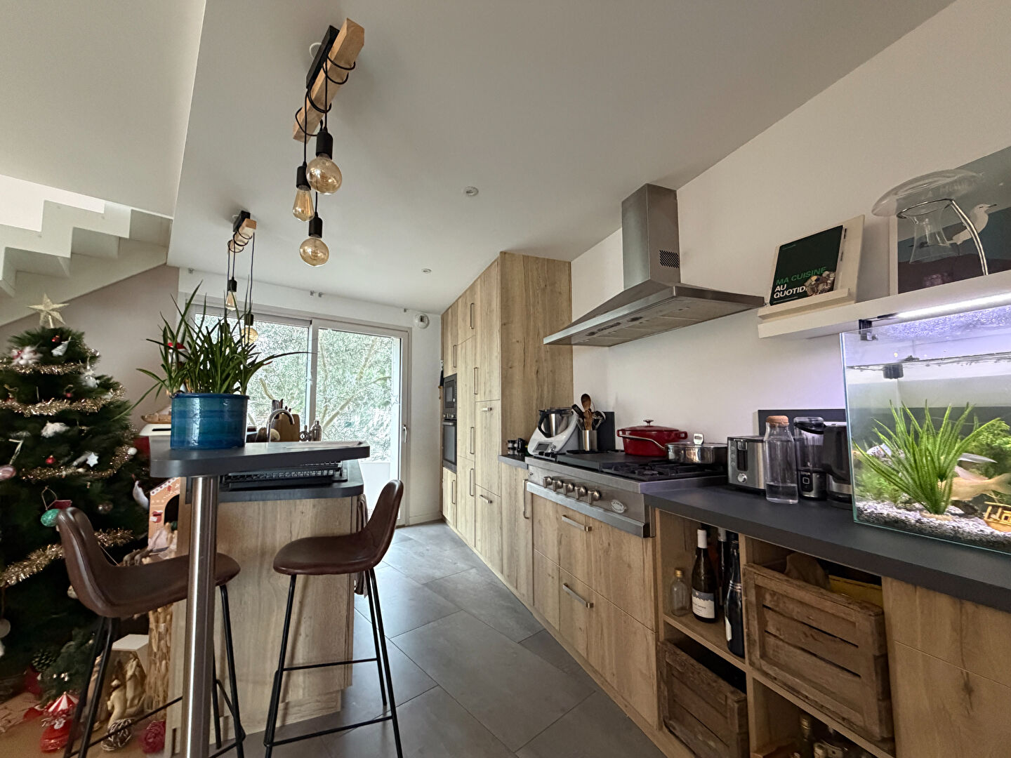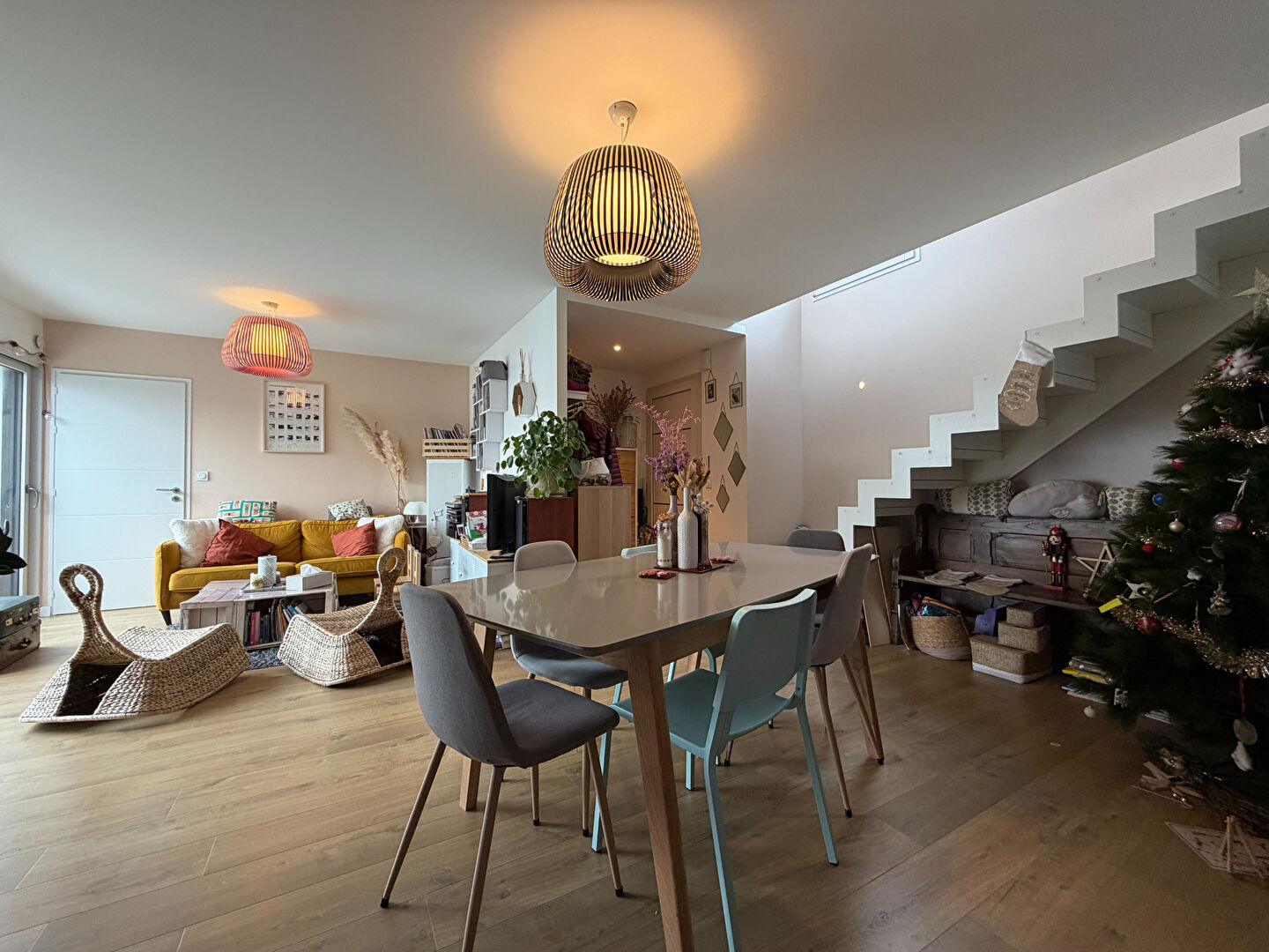 Cette maison récente propose des espaces parfaitement pensés et une atmosphère chaleureuse. Le rez-de-chaussée s'ouvre sur un salon-séjour lumineux avec brise-soleil, parquet chauffant et cuisine américaine aménagée et équipée, ainsi qu'une suite parentale avec salle d'eau et WC indépendant.