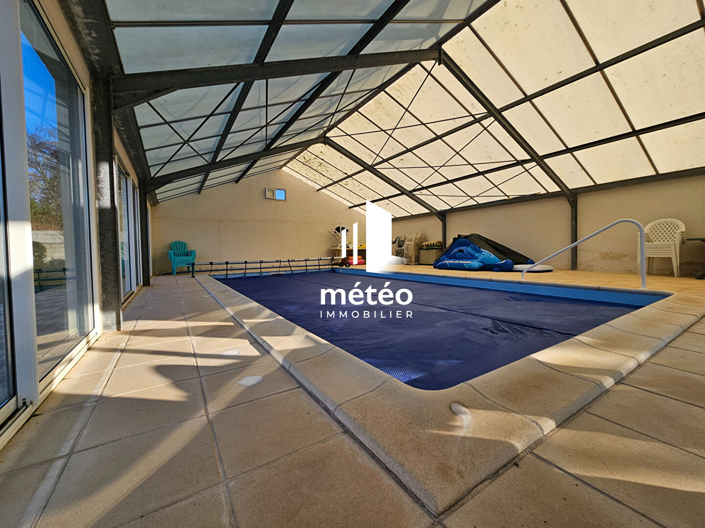 Une belle piscine couverte et chauffée vient compléter le terrain clos et paysagé de 1 665 m².
